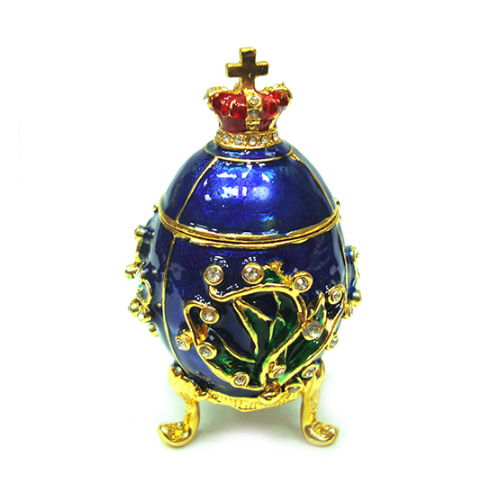 Роскошная шкатулка – яйцо в стиле Фаберже изготовлено из металла, покрыто холодной эмалью и инкрустировано стразами.