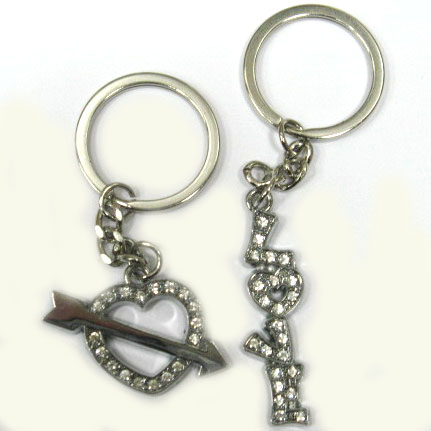 Брелок металевий для двох закоханих 'Серце з ключем LOVE'.
