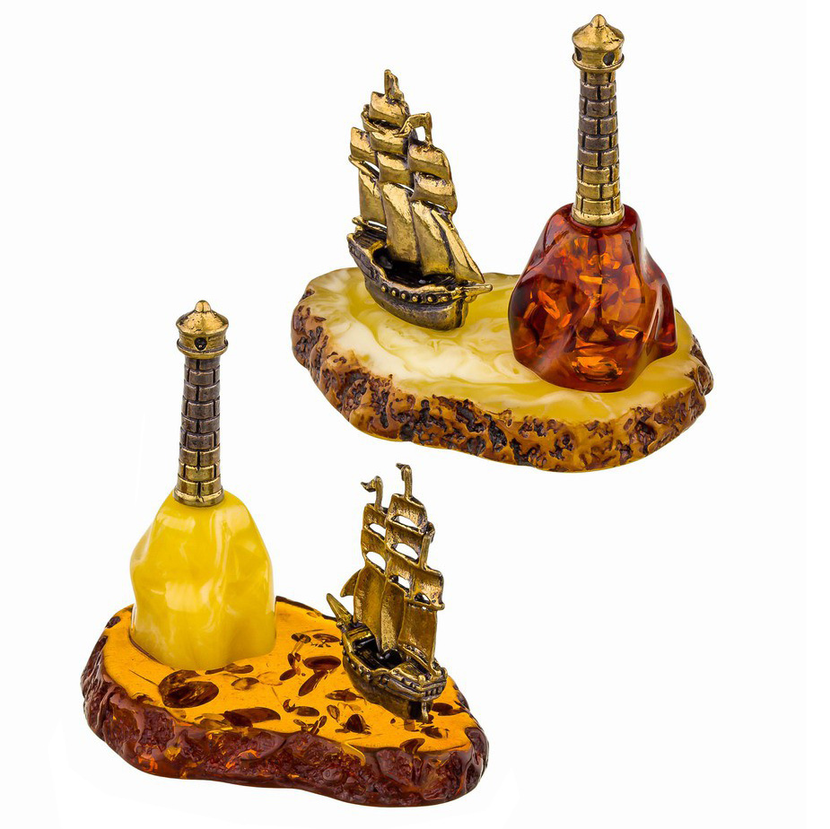 Фігурка з бронзи і бурштину Корабель Маяк №207B