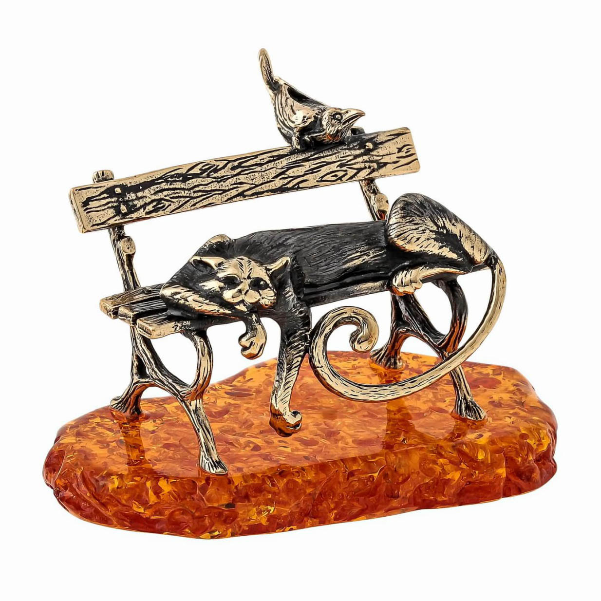 Фігурка з бронзи і бурштину 'Кіт Сонячний день'.