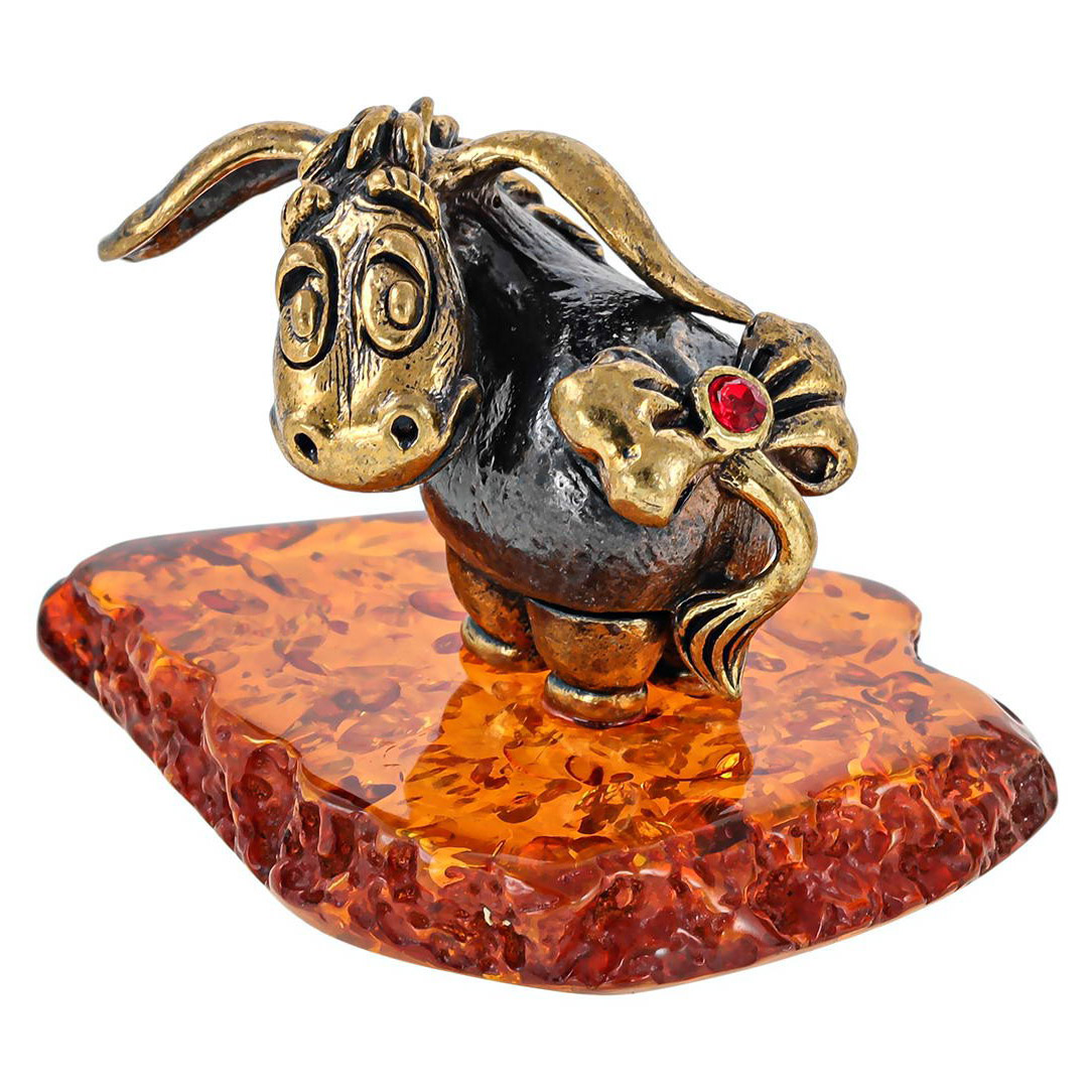 Фігурка з бронзи і бурштину Ослик з бантиком №400K