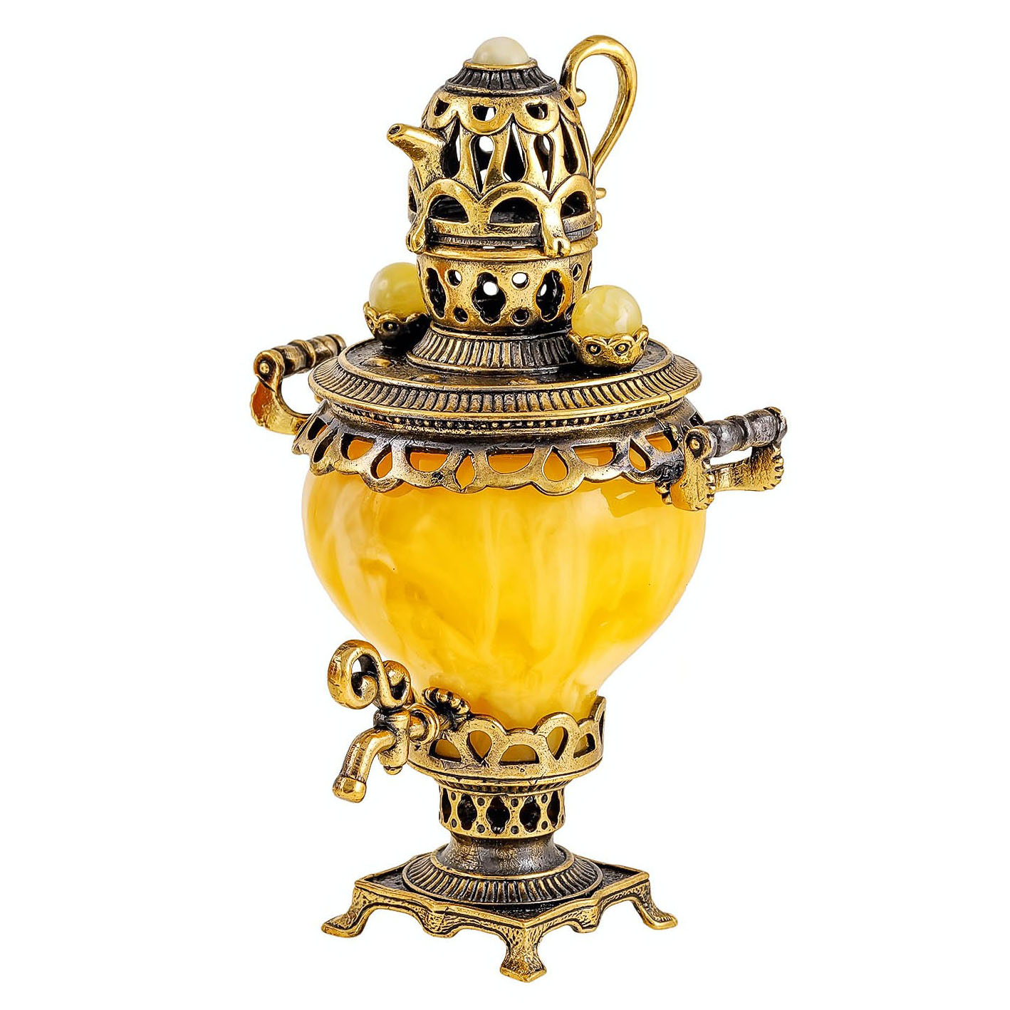 Фігурка з бронзи і бурштину Самовар Пузатий з чайником №2317B