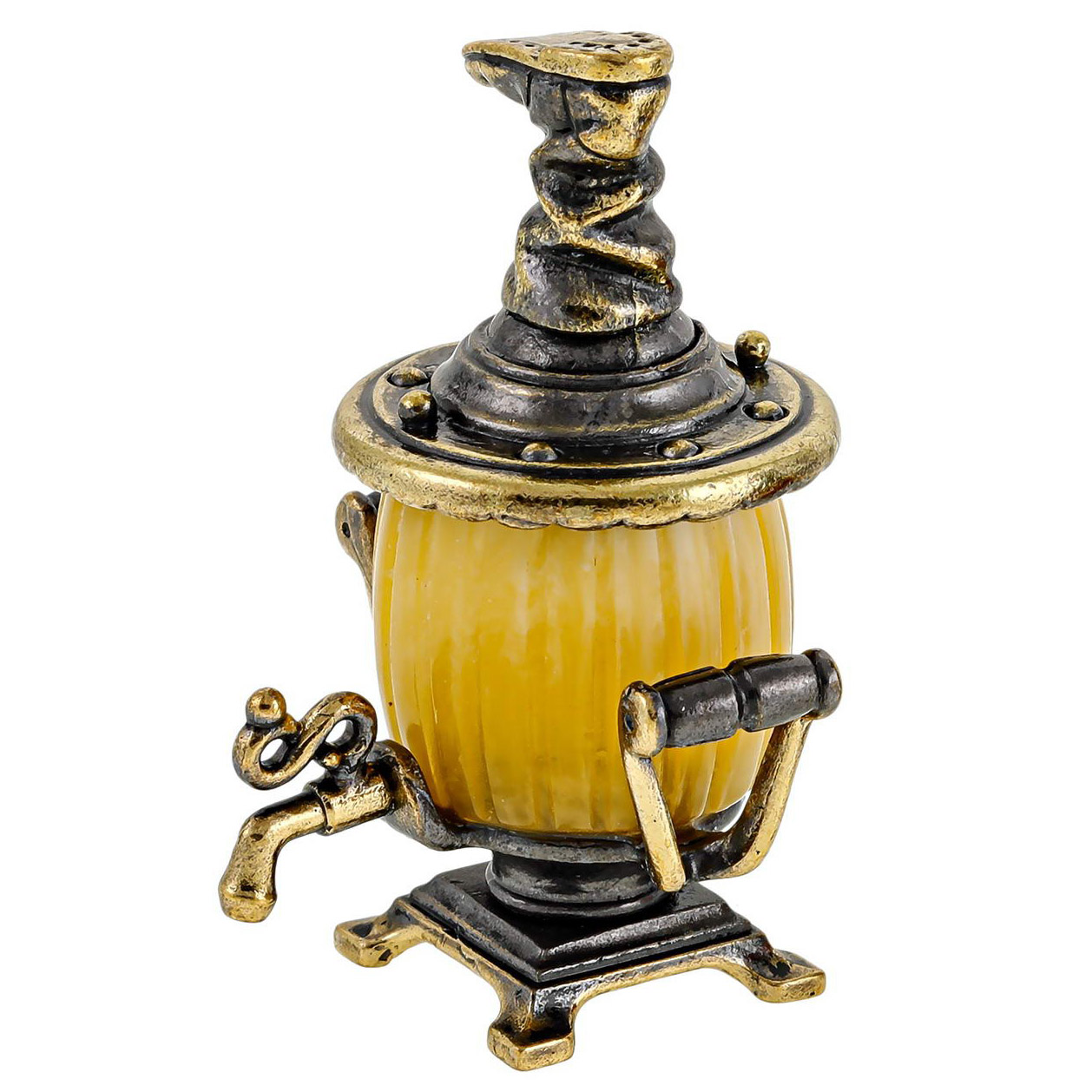 Фігурка з бронзи і бурштину Самовар з чоботом середній №2543B