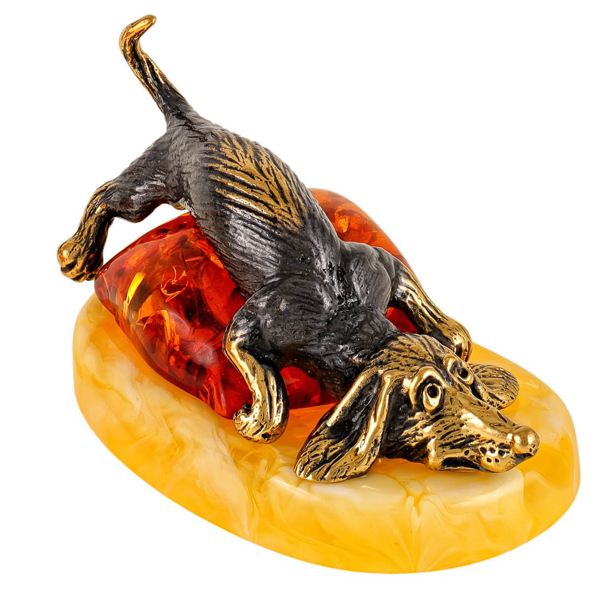 Фігурка з бронзи і бурштину Собака Такса ледача №2278B