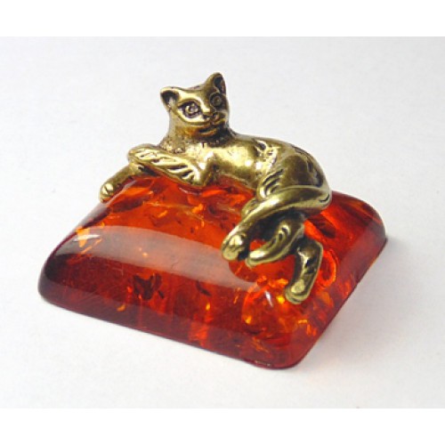Фігурка з бронзи і бурштину Кіт на подушці №1018