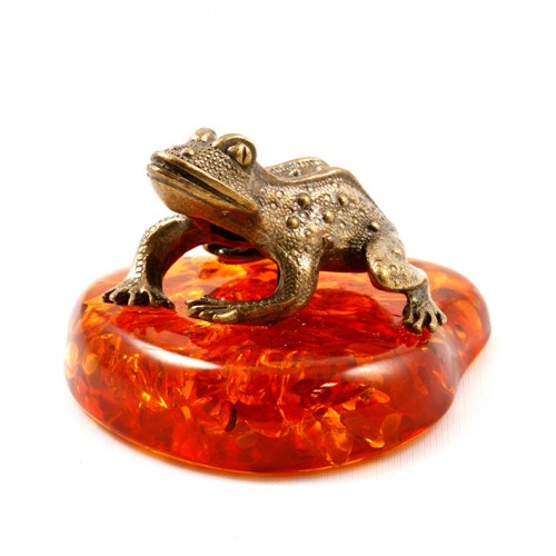 Фігурка з бронзи і бурштину Жаба №1055