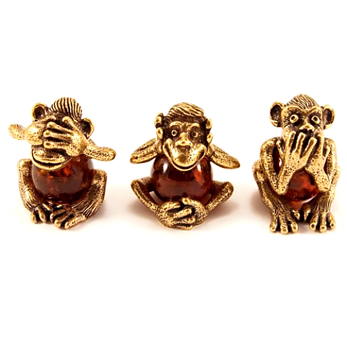 Набір фігурок з бронзи і бурштину 'Мавпочки. Нічого не чую, нічого не бачу, нічого нікому не скажу'.
