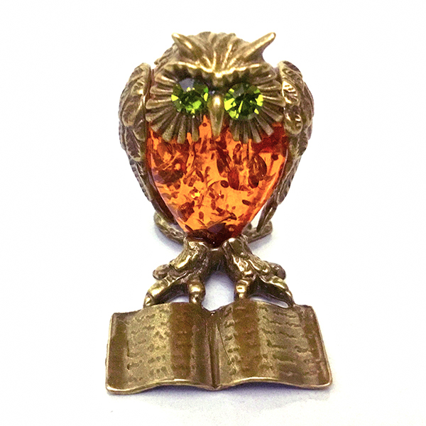 Фігурка з бронзи і бурштину Сова №2015