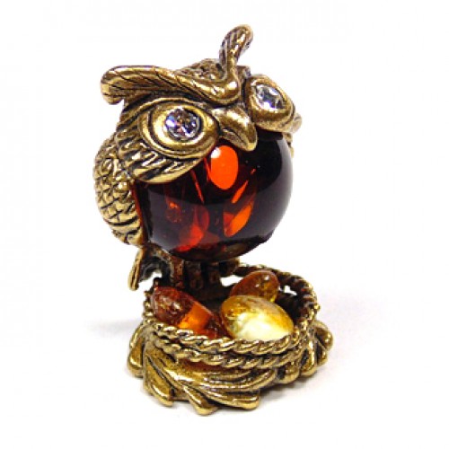 Фігурка з бронзи і бурштину Сова №240