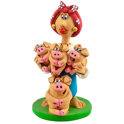 Фігурка з кераміки Козачка зі свинкою і трьома поросятами №51-11