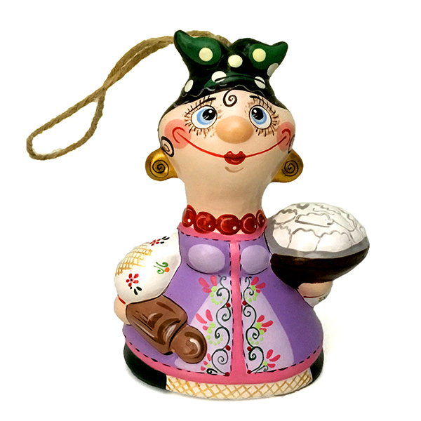 Дзвіночок з кераміки Козачка зі скалкою і варениками №KL5209