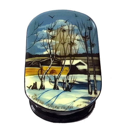 Лакова мініатюра Шкатулка 'Грачі прилетіли'. Ручний розпис.