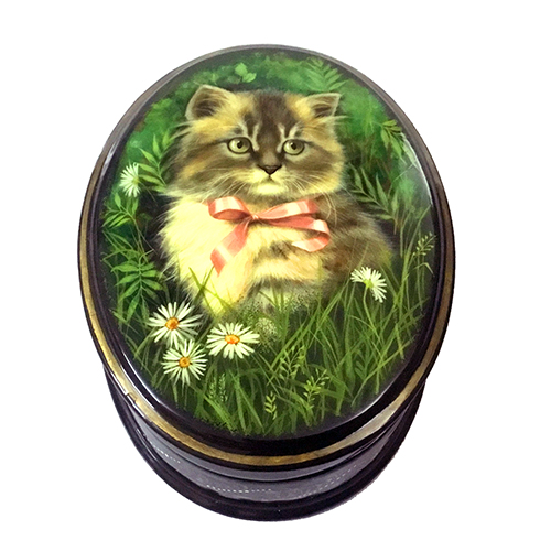 Лакова мініатюра Шкатулка 'Кішка'. Ручний розпис.