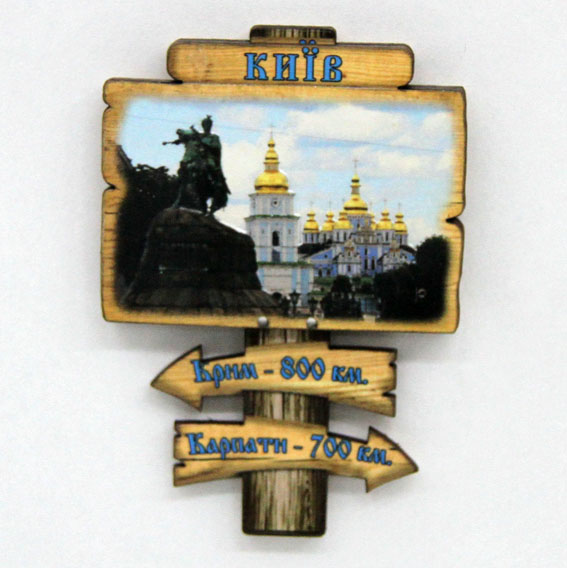 Магніт з дерева покажчик кілометрів з видами Києва.