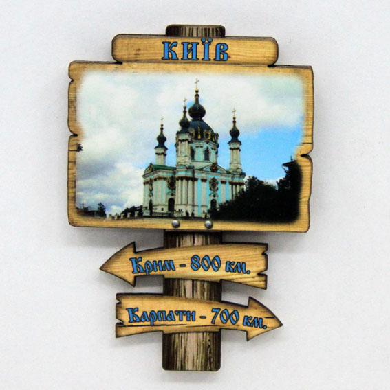 Магніт з дерева покажчик кілометрів з видами Києва.