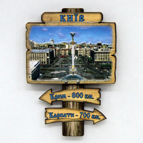 Магніт з дерева покажчик кілометрів з видами Києва.