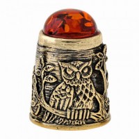 Наперсток з бронзи і бурштину Сова №632