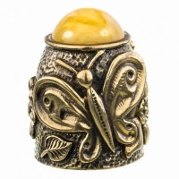 Наперсток з бронзи і бурштину Метелики з кабошоном №2087