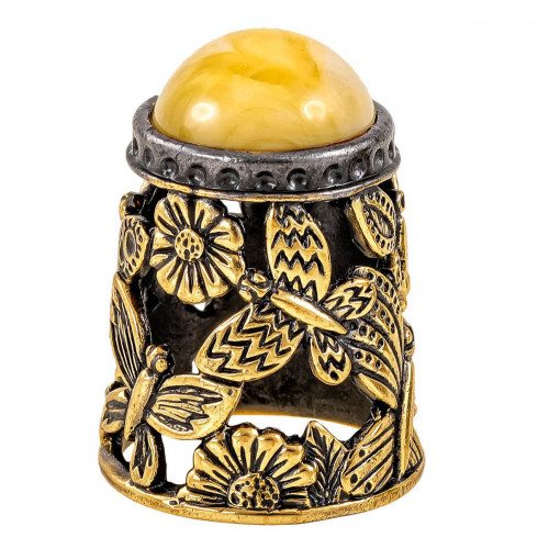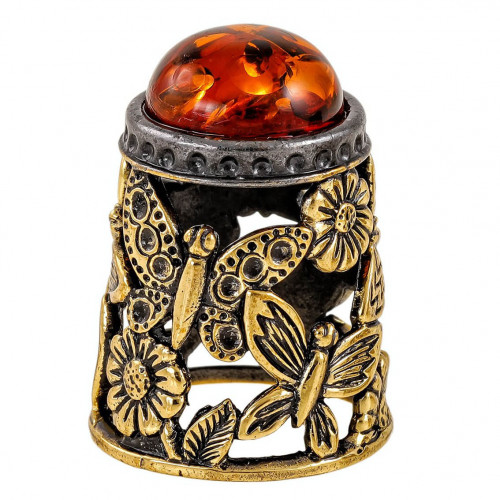 Наперсток з бронзи і бурштину 'Метелики з кабошоном'