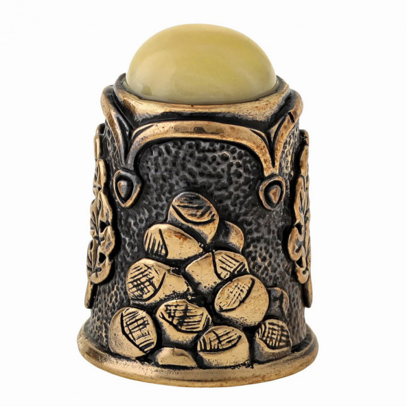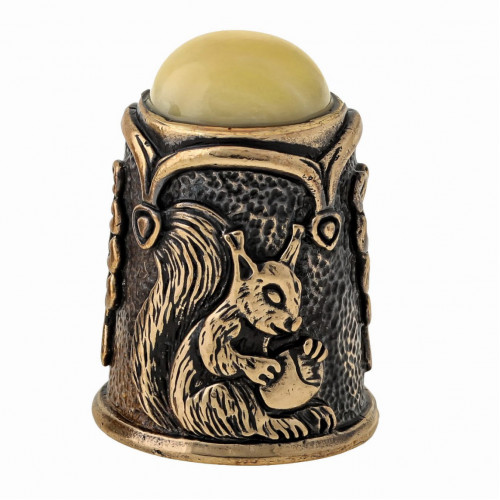 Наперсток з бронзи і бурштину Білочка з горішками і кабошоном №1519B