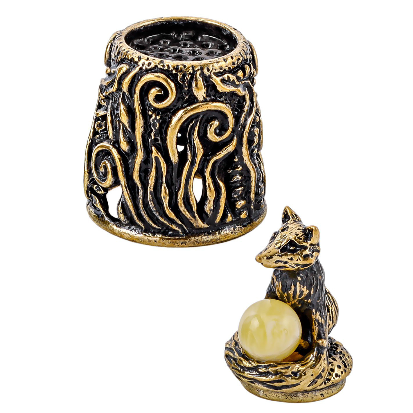 Наперсток з бронзи і бурштину Лисичка магніт №2440B