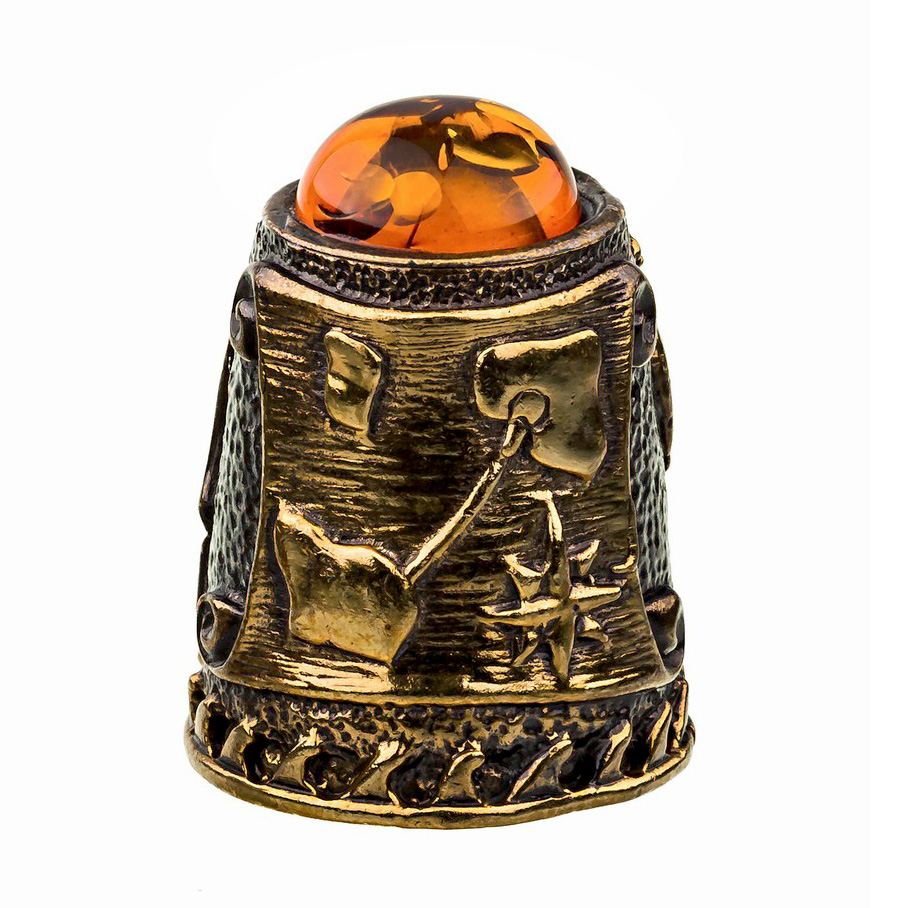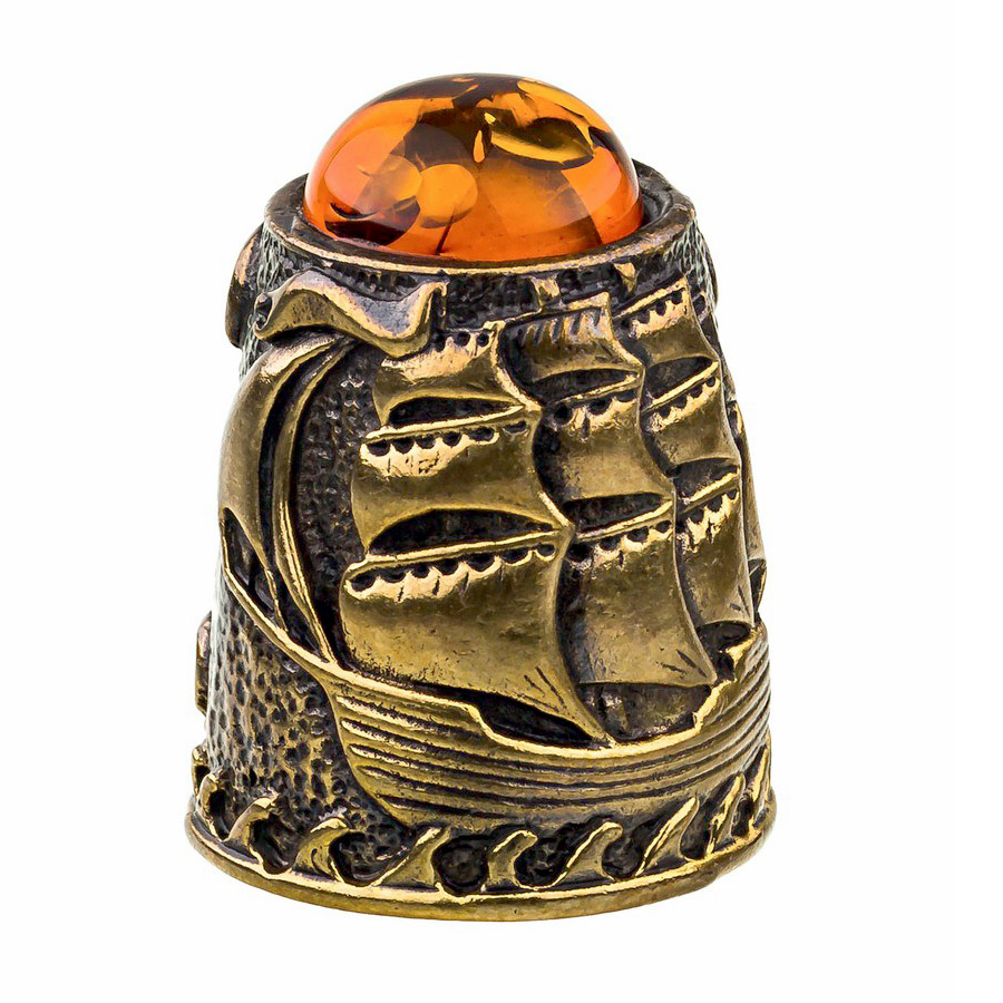 Наперсток з бронзи і бурштину 'Фрегат з кабашоном'.