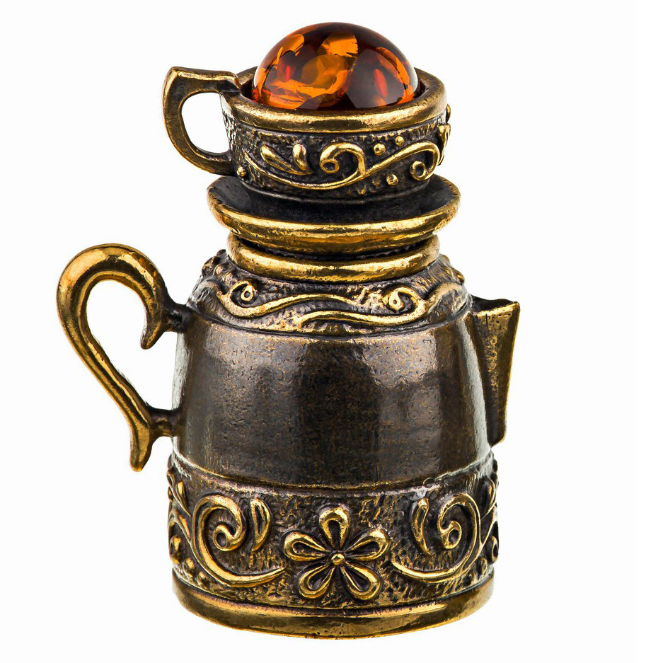 Наперсток з бронзи і бурштину Чайник з чашкою магніт №734K