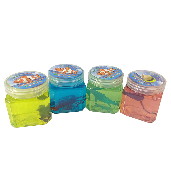 Слайм-лізун 'Водний Світ' з іграшковою фігуркою морських мешканців усередині.