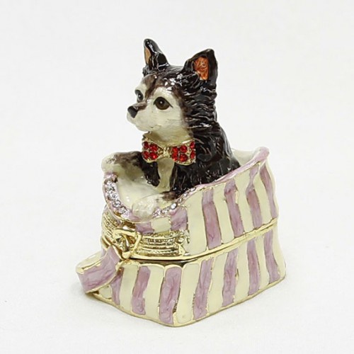 Шкатулка у стилі Фаберже 'Собачка у сумці'.