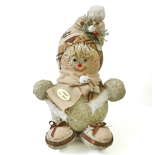 Фігурка 'Сніговик', виготовлений з тканини і джутового канату просоченого спеціальним клеєм.