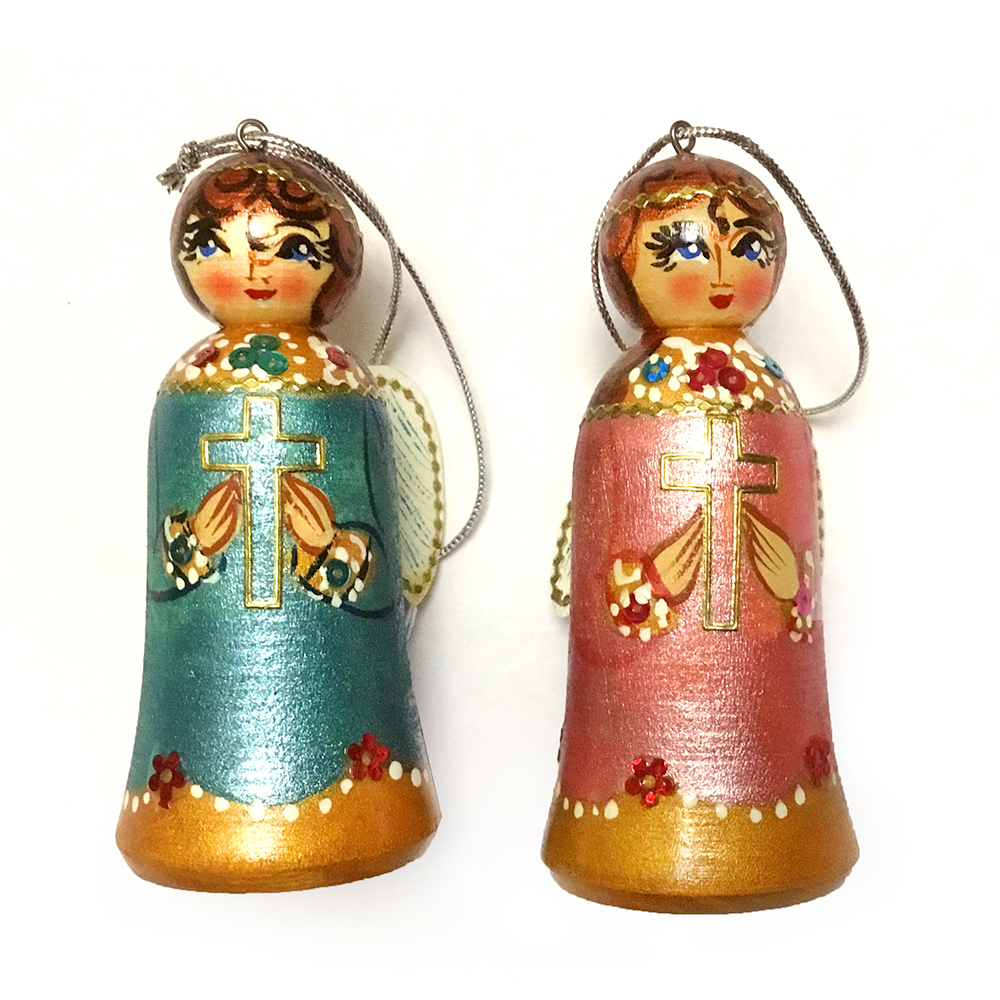 Новорічна іграшка для ялинки ручної роботи з дерева з художнім розписом 'Ангел'.