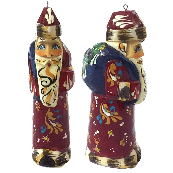 Новорічна іграшка для ялинки ручної роботи з дерева з художнім розписом 'Дід Мороз'.
