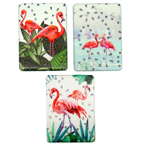 Дзеркало з оздобленням зі штучної шкіри, зі стразами 'Фламінго'.