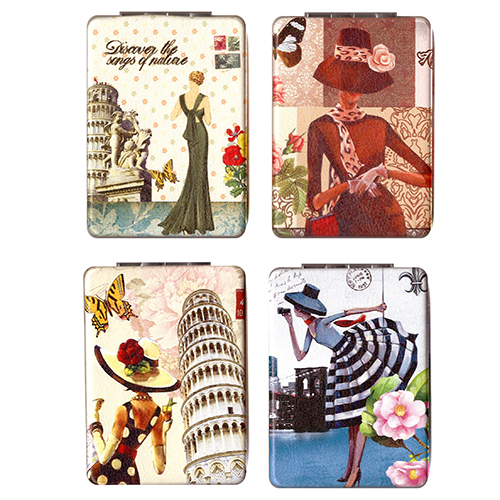 Дзеркало металеве з оздобленням зі штучної шкіри, двостороннє, прямокутне. Це оригінальний і стильний косметичний сувенір, практичний подарунок який оцінить будь-яка дівчина або жінка.