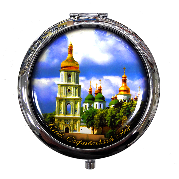 Кишенькове дзеркальце з видами Києва - це оригінальний і стильний косметичний сувенір, практичний подарунок який оцінить будь-яка дівчина або жінка.