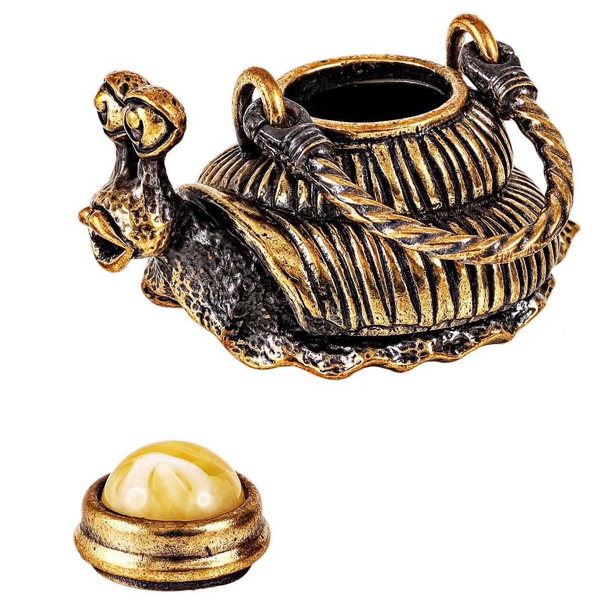 Фигурка из бронзы и янтаря Чайник Улитка №1980B