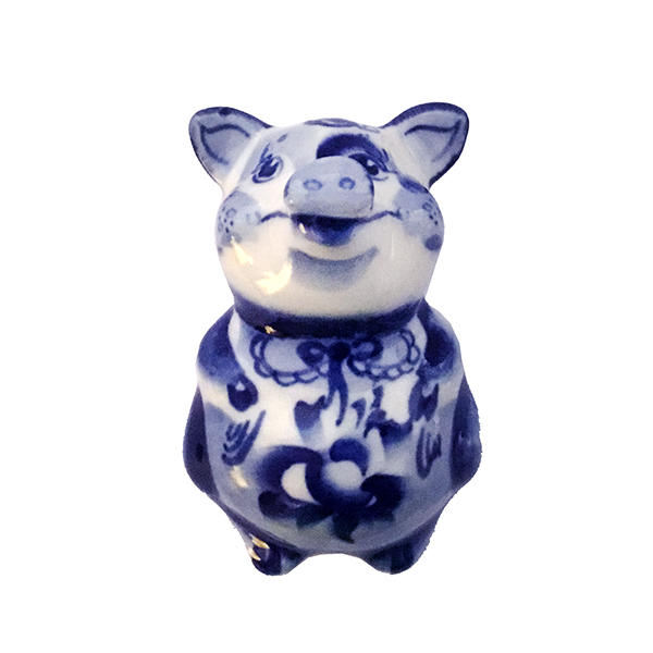 Фигурка-магнит Гжель "Свинка" символ 2019 года.
