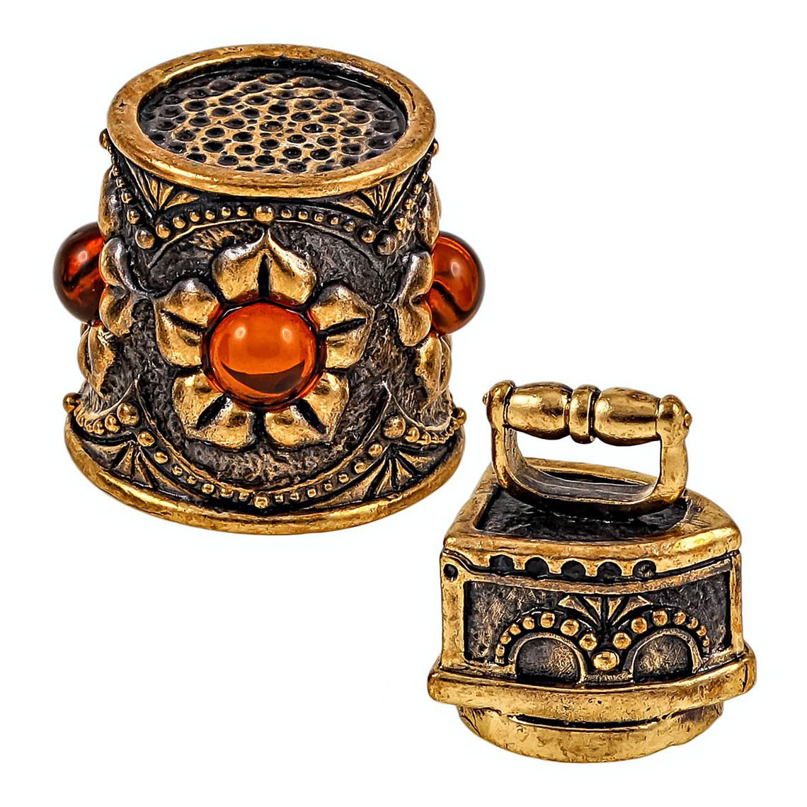 Наперсток из бронзы и янтаря "Ажурный с утюгом".