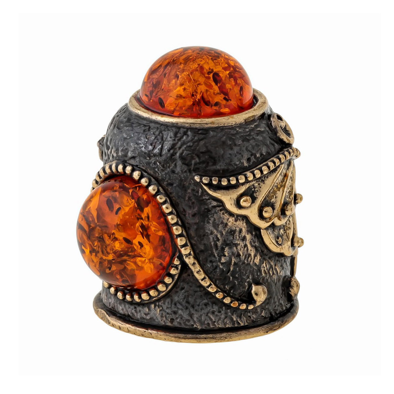 Наперсток из бронзы и янтаря "Бабочка Ажурная с кабошоном".