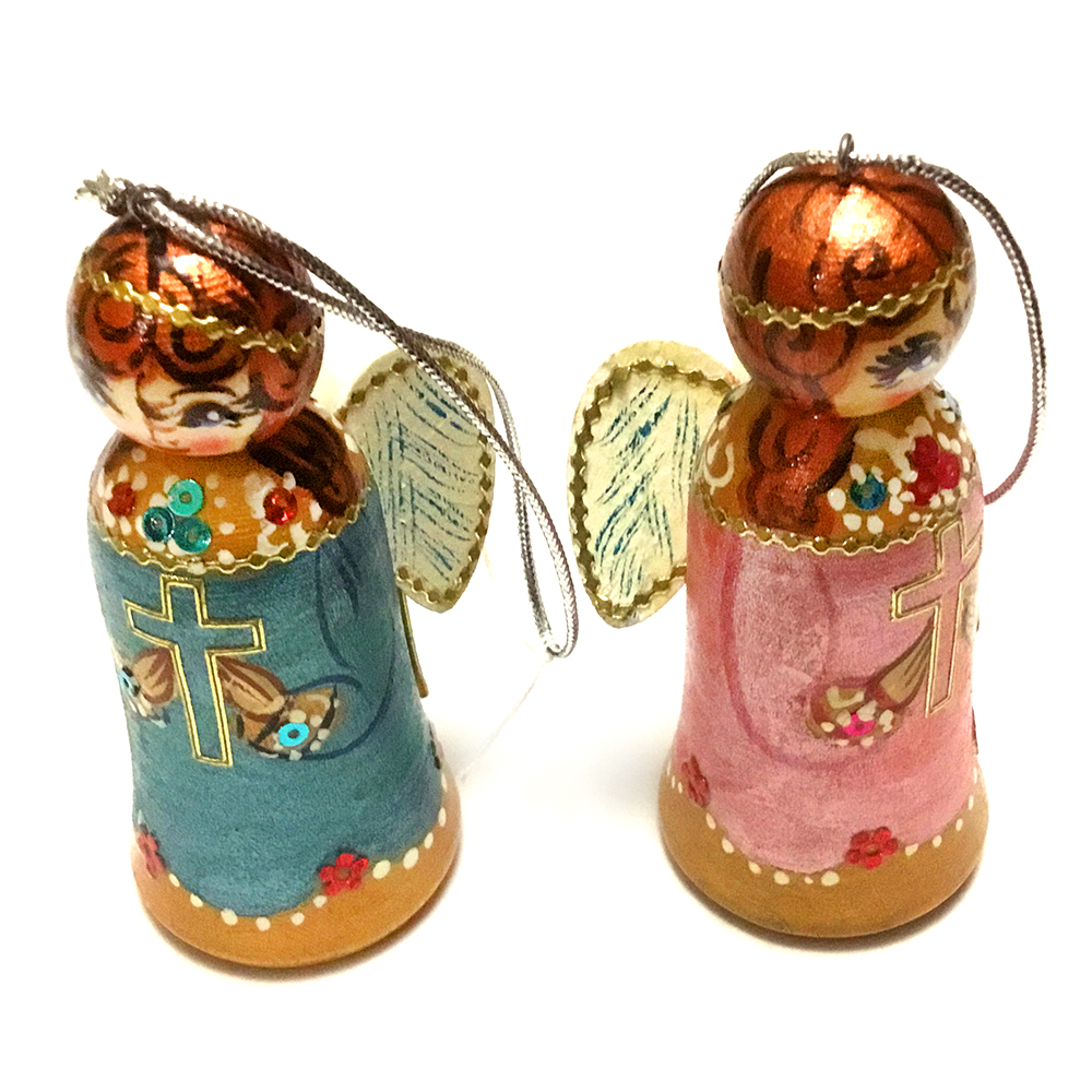 Новогодняя игрушка для ёлки ручной работы из дерева с художественной росписью "Ангел".