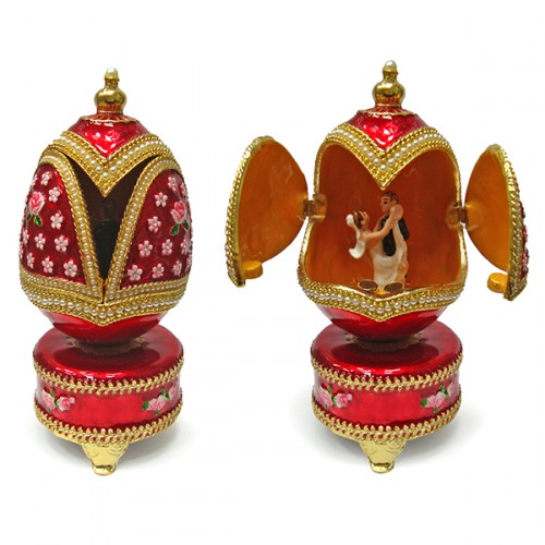 Яйцо-шкатулка Фаберже музыкальное, с танцующими молодоженами. Изготовлено из металла и украшено стразами.