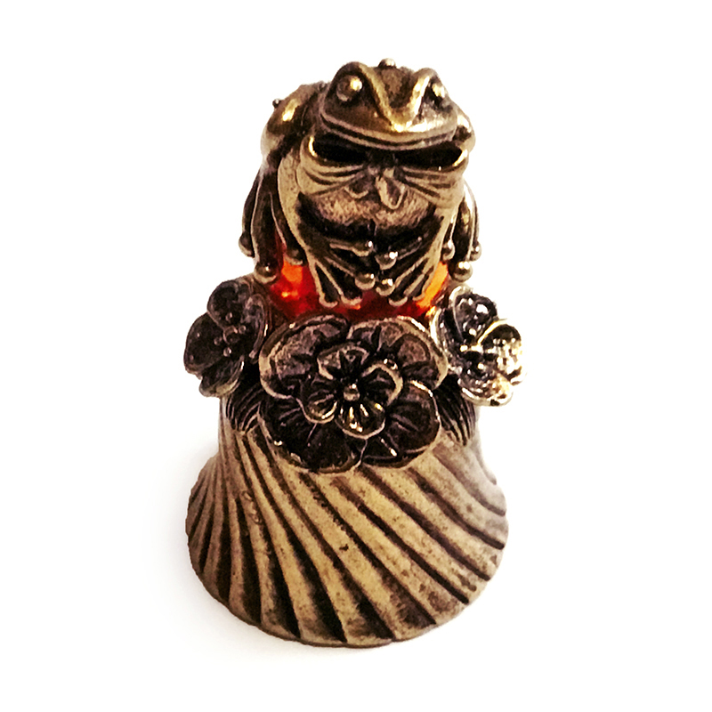 Фігурка-дзвіночок з бронзи і бурштину Жаба №1493-1