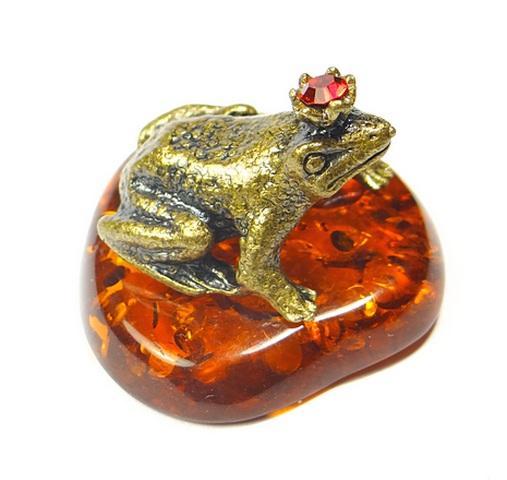Фігурка з бронзи і бурштину Жаба-царівна №1197