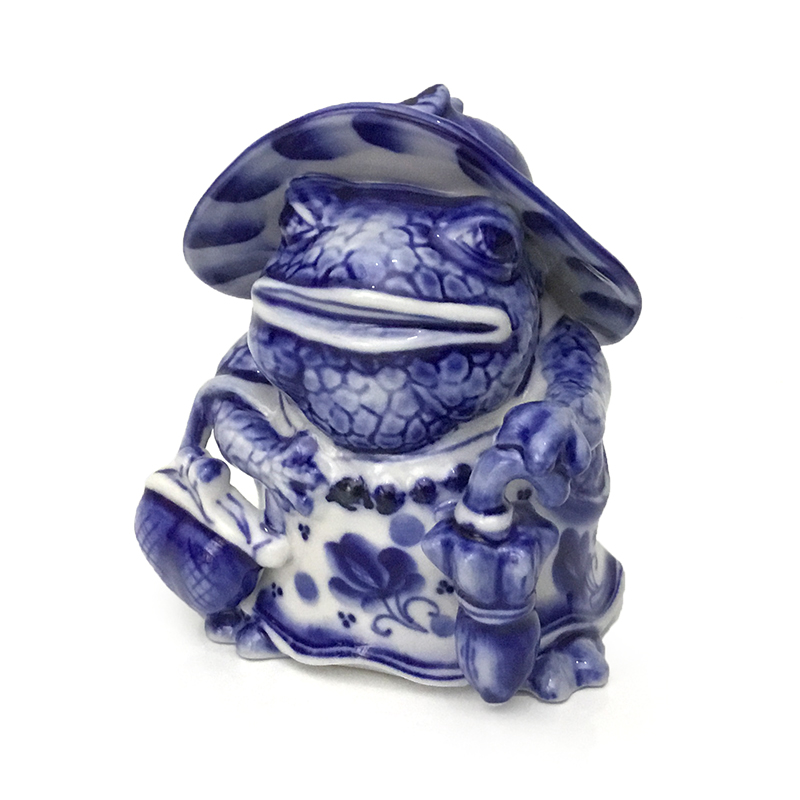 Фігурка Гжель 'Жаба у капелюсі з парасолькою'.
