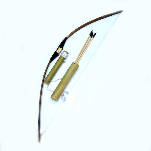 Іграшкова зброя цибуля. Виготовлено з дерева, у комплекті три стріли з гумовими наконечниками.