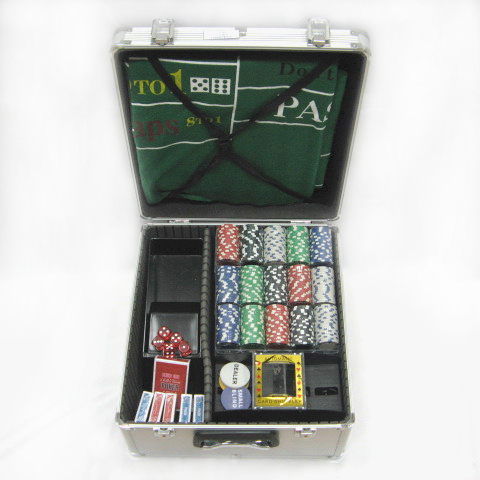 Гра Покер на 600 фішок у комплекті з покерним обладнанням (карти, сукно, автоматичний змішувач карток, прилад для подачі карт тощо) у металевій валізі. Гра для веселого та інтерсного проводження вільного часу в компанії найкращих друзів.