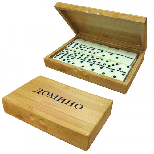 Гра доміно в дерев'яній лакованій коробці, кістки з пластику.