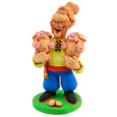 Фігурка з кераміки 'Козак з двома поросятами'.