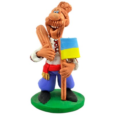 Фігурка з кераміки 'Козак з прапором і дубиною'.