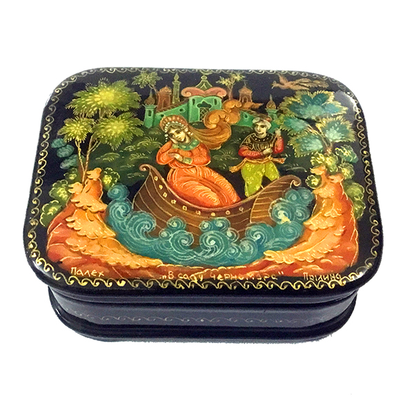 Лакова мініатюра Шкатулка Палех 'В саду Чорномора'. Ручний розпис.